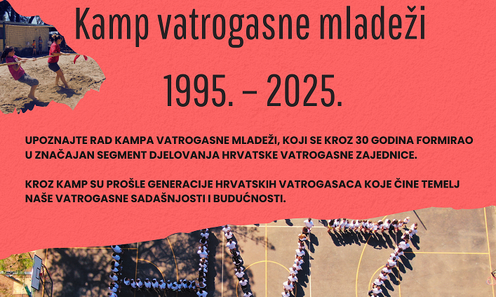 Hrvatska vatrogasna zajednica obilježava 30. obljetnicu rada Kampa vatrogasne mladeži. Obilježavanje ove visoke obljetnice započeti će svečanim prijemom za visoke uzvanike koji će se održati u Županijskoj palači u Varaždinu u petak 19. prosinca 2025. godine s početkom u 11:00 sati. Svečani prijem će biti prilika za predstavljanje brošure o radu Kampa te za podjelu priznanja zaslužnim pojedincima i organizacijama čije je zalaganje omogućilo uspješno djelovanje ovog važnog segmenta u radu s vatrogasnom mladeži.
